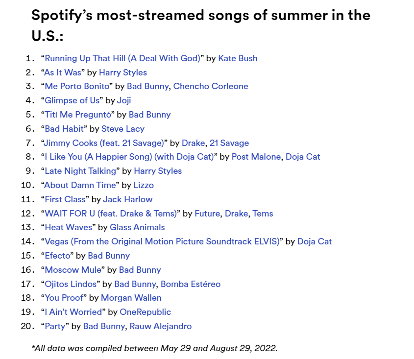 假如你在这个炎天出门,翻开收音机或方才翻开TikTok,你能够会听到三首歌中的一首:凯特·布什(Kate Bush)的《Running Up That Hill (A Deal with God)》(跑上那座山(和天主生意业务)),哈卷哈里·斯泰尔斯(Harry Styles)的《As It Was》或莉佐(Lizzo)的《About Damn Time》。