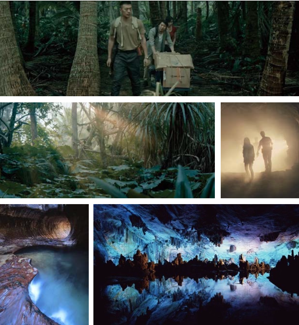 搭建它既要思索天然岩穴中没有采光点,除洞口透光外,别处应当是完全阴郁的,可同时又要应对浪漫剧情的灯光气氛。