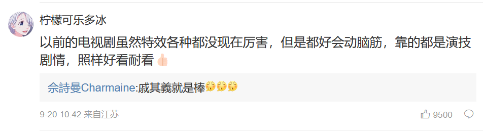 “之前的电视剧固然殊效没现在凶猛,然则都好会动脑筋,靠的都是演技剧情,照样美观耐看。”