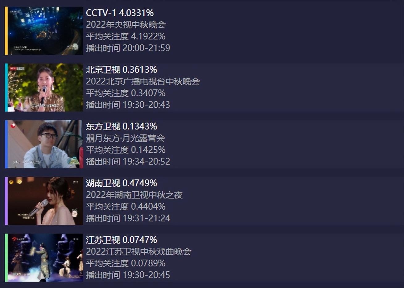 还好湖南台晚会基础底细还在,5台晚会中收视仅次于央视,稳居第二,也轻松拿下卫视中秋晚会第一。