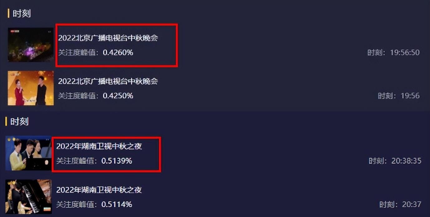 不只如斯,霍思燕和杜江夫妻独唱拿到了北京台中秋晚会收视最高点0.42,和湖南台收视最高点0.51相差也不外0.09。