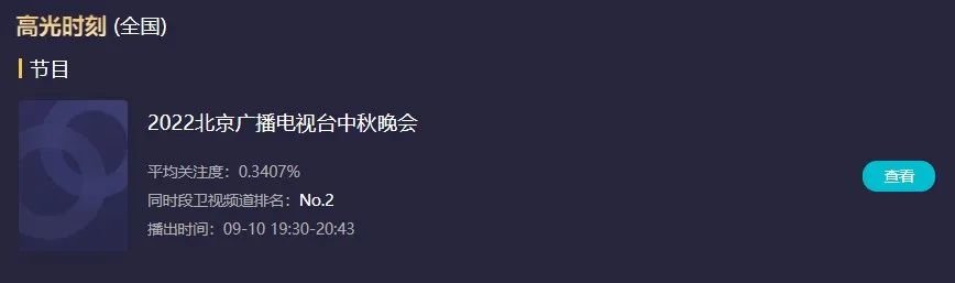 ——看排名就可以感触感染到了,北京台中秋晚会收视全体排名只拿到第三,但换个角度看,他们也已是卫视第二了呀。