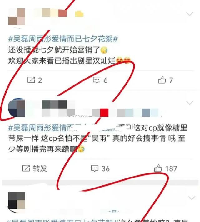 微博营业不走心的窦骁被称“赘婿”;吴磊新剧《爱情而已》发七夕物料、与另一小花的爱情风闻,都惹“吴露可逃”CP粉不满;王鹤棣在有圈外女友的状况下仍与虞书欣在花絮或综艺中甘美互动,被指“欺骗”。