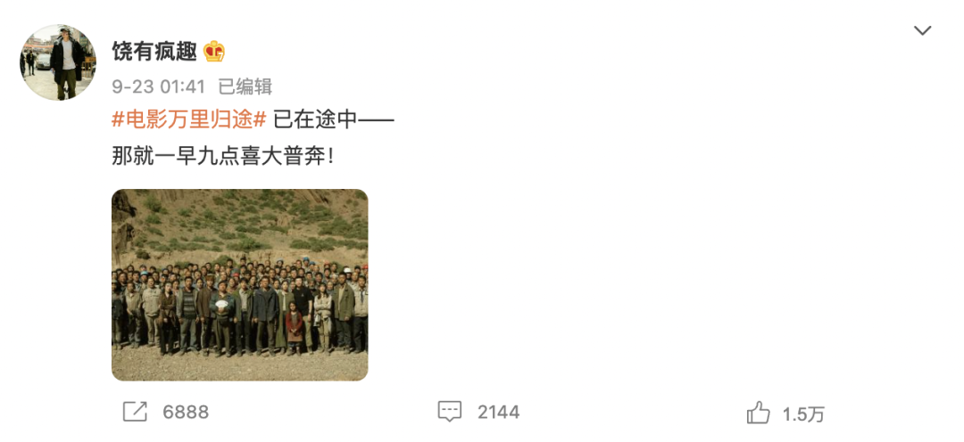 但在9月23日凌晨,《平凡英雄》因物料偷跑而率先被媒体公布定档。随后,凌晨两点,《万里归途》导演饶晓志也坐不住了,直接公布,字里行间透着本人欢愉的心境。