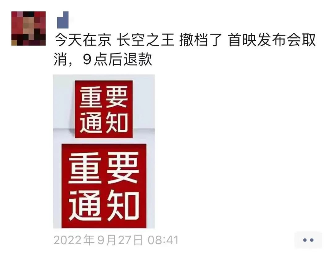 当谁都觉得国庆档声势已定之时,9月27日上午,“预售冠军”《长空之王》公布紧要撤档,当天本会举办的首映礼悉数作废。