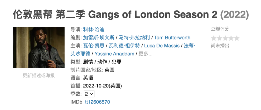 《伦敦黑帮》第二季也要来了,现在的第一季我照样很喜好的,由于有加雷斯·埃文斯执导,所以举措戏异常血暴和出色。