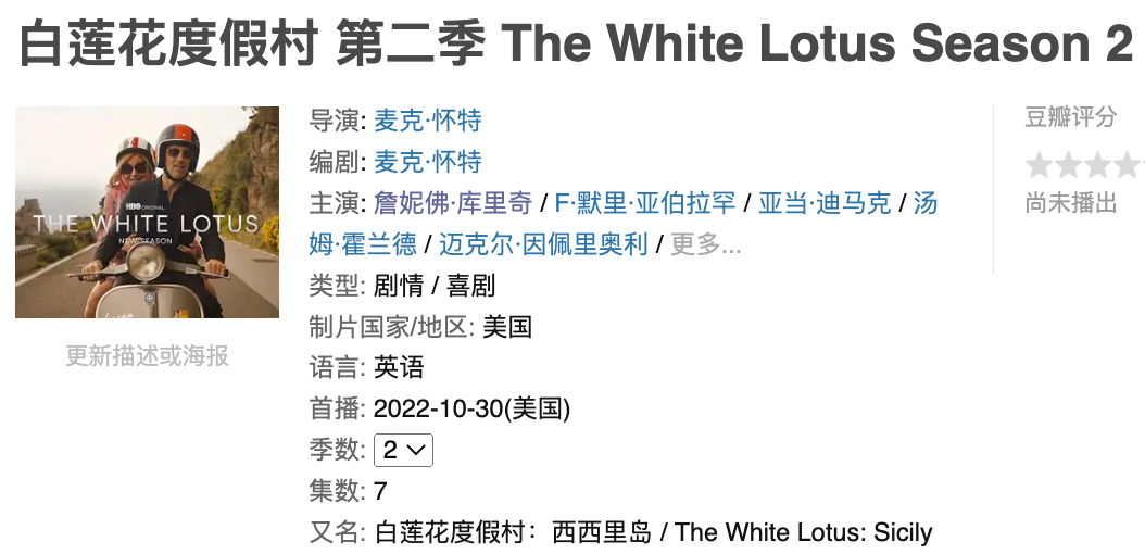 这一次,全新故事发作在位于意大利西西里岛的白莲花度假村,工夫局限为一周。
