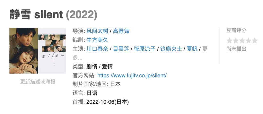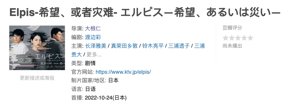 金子茂树再次协作仲野太贺,这就足够等待了。金子茂树之前编剧的短剧开端啦 》《我的事说来话长》都异常棒,所以,此次也要给足等待哦。
