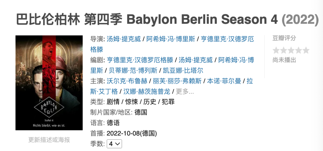 《巴比伦柏林》第四季也要来了,由于疫情,这个剧也拖得良久了,此次,终究要来了。