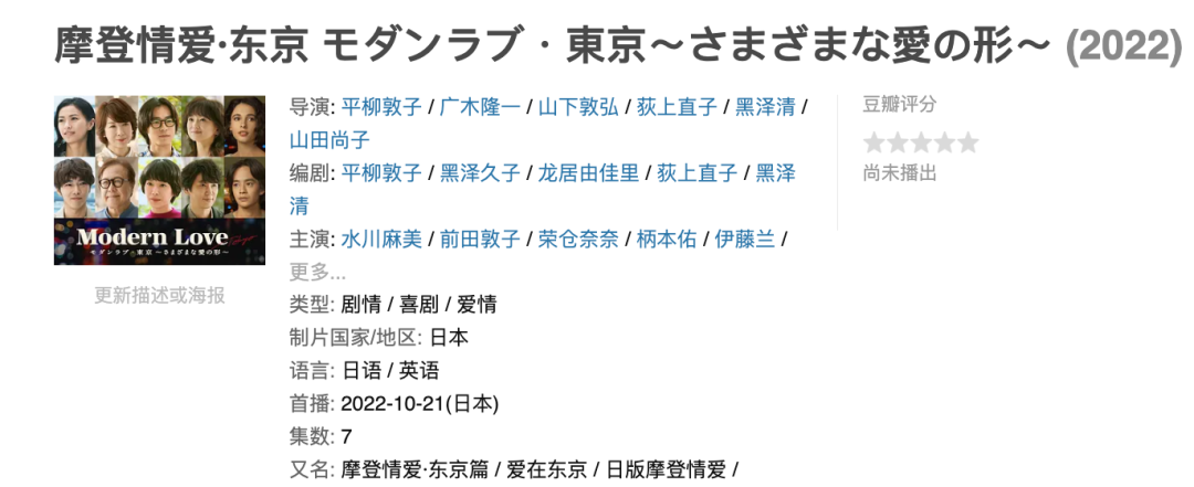 你看下导演,有平柳敦子、广木隆一、山下敦弘、荻上直子、 黑泽清 、 山田尚子,而演员声势就更厉害了。