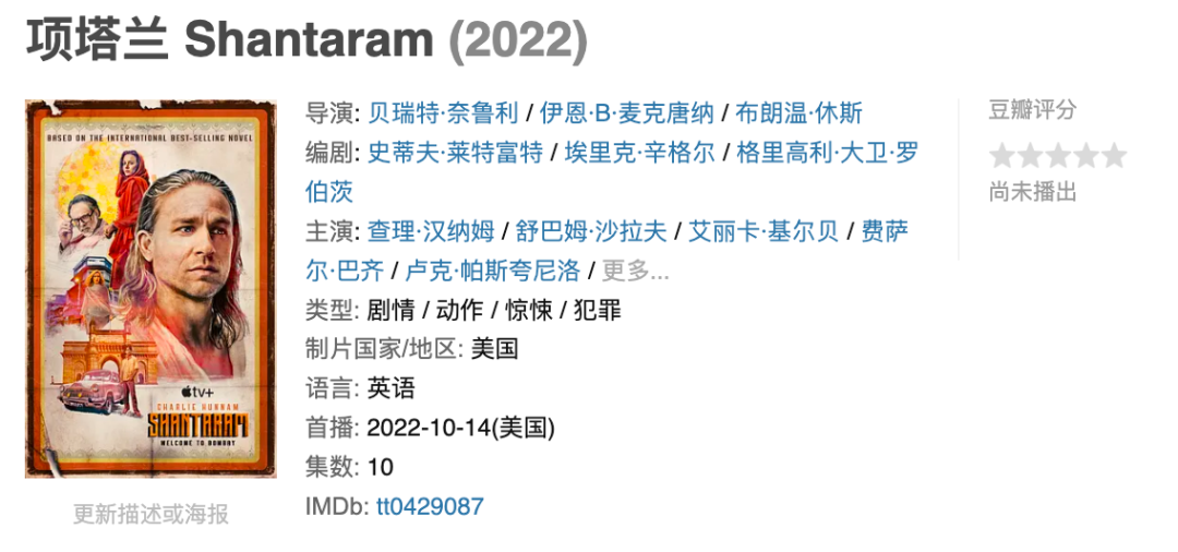剧情简介转自豆瓣:该剧改编自格里高利·大卫·罗伯茨2003年的同名滞销小说,讲述银行抢匪Lin Ford(查理·汉纳姆 饰)自澳洲逃狱后逃往印度孟买,一场救赎之旅就此开启。