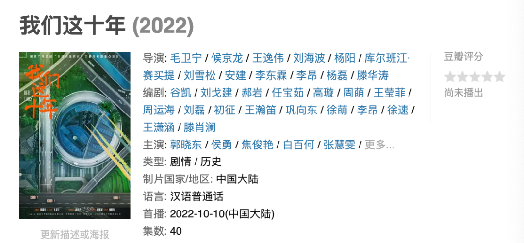 看看豆瓣的剧情简介: 2012-2022,这十年的11个瞬间记忆,影象为笔,落墨成卷,我们曾配合书写,一同见证。