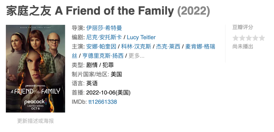 来自peacock的一部网剧,立功悬疑类,真实案件改编,喜好此类剧集的,可以存眷起来了。