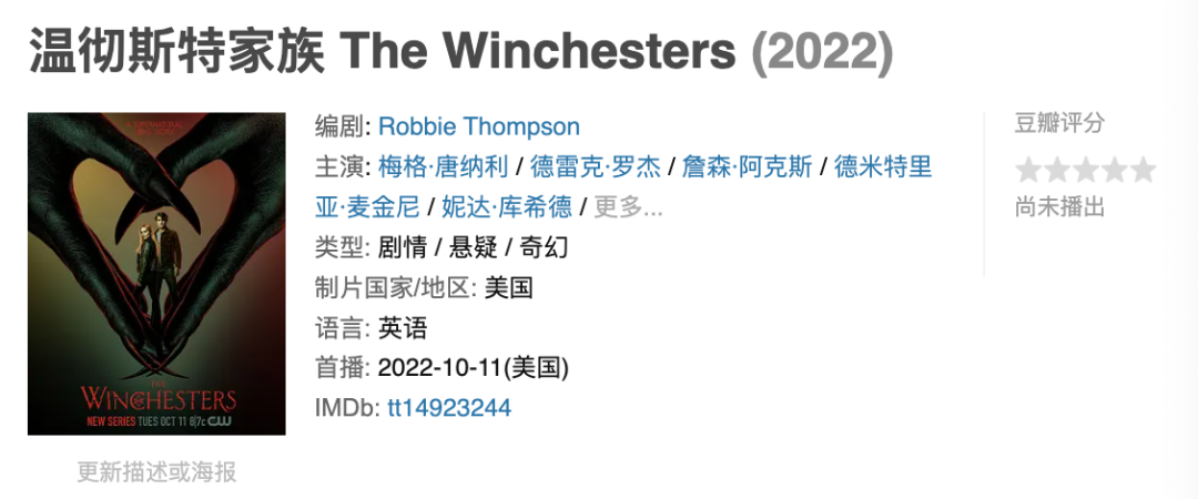 《邪恶力气》的前传剧集《温彻斯特家族》,聚焦温彻斯特兄弟迪恩和山姆的怙恃约翰和玛丽。从迪恩的角度讲述一段史诗般、不曾描画过的恋爱故事,约翰是若何碰到玛丽、他们是若何不惜一切解救他们的恋爱也解救全部世界。