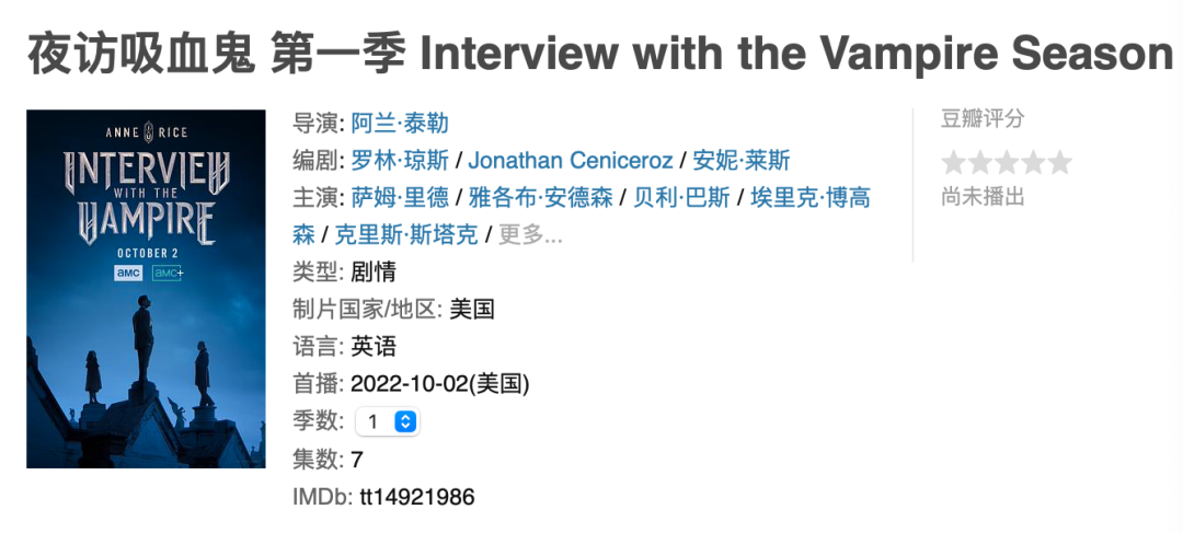 而现在,它的剧版也来了,依然是安妮·莱斯的同名哥特小说改编,故事照样相似,不外换了全新的声势,置信也会有全新的演绎吧。