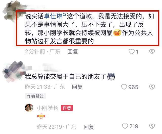 小刚学长与游良文明老板罗冠彦之间的金钱纠葛,随同着对方的被刑拘(小刚学长地下这一音讯)行将迎来终局,但小刚学长针对后续依然未做回应,反而别的三位曾支撑罗冠彦的网红为了后续事业,前后出头具名抱歉,包孕卓仕琳、江离、赵喵喵喵。
