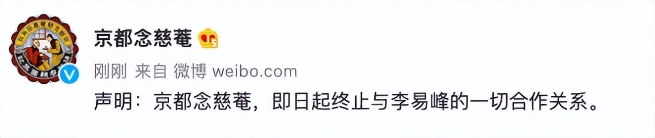 京都念慈菴也发布声明称,克日起终止与李易峰的一切协作关系。
