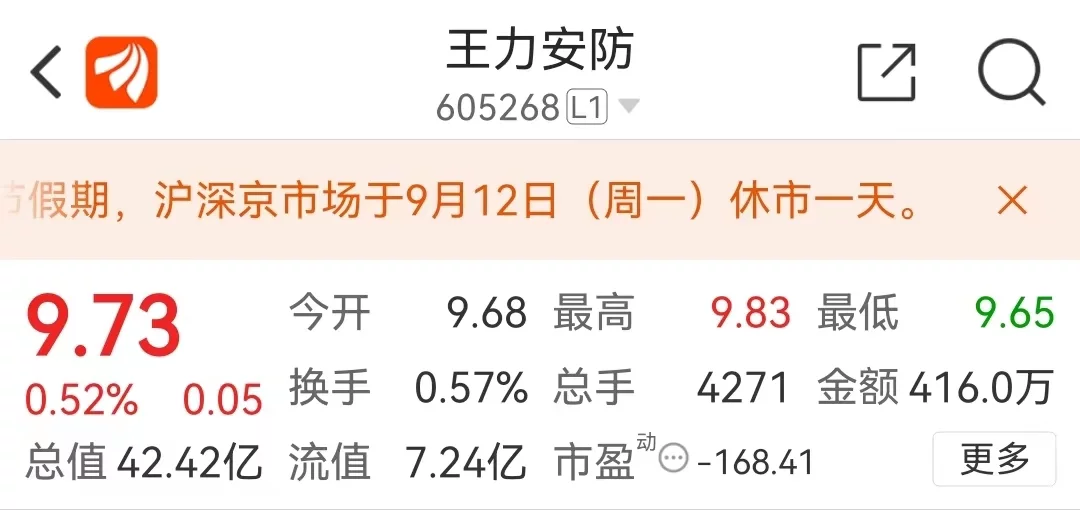 截至往年上半年,王力安防股东户数共有1.71万户,公司今朝最新股价9.73元/股,总市值为42.42亿元。