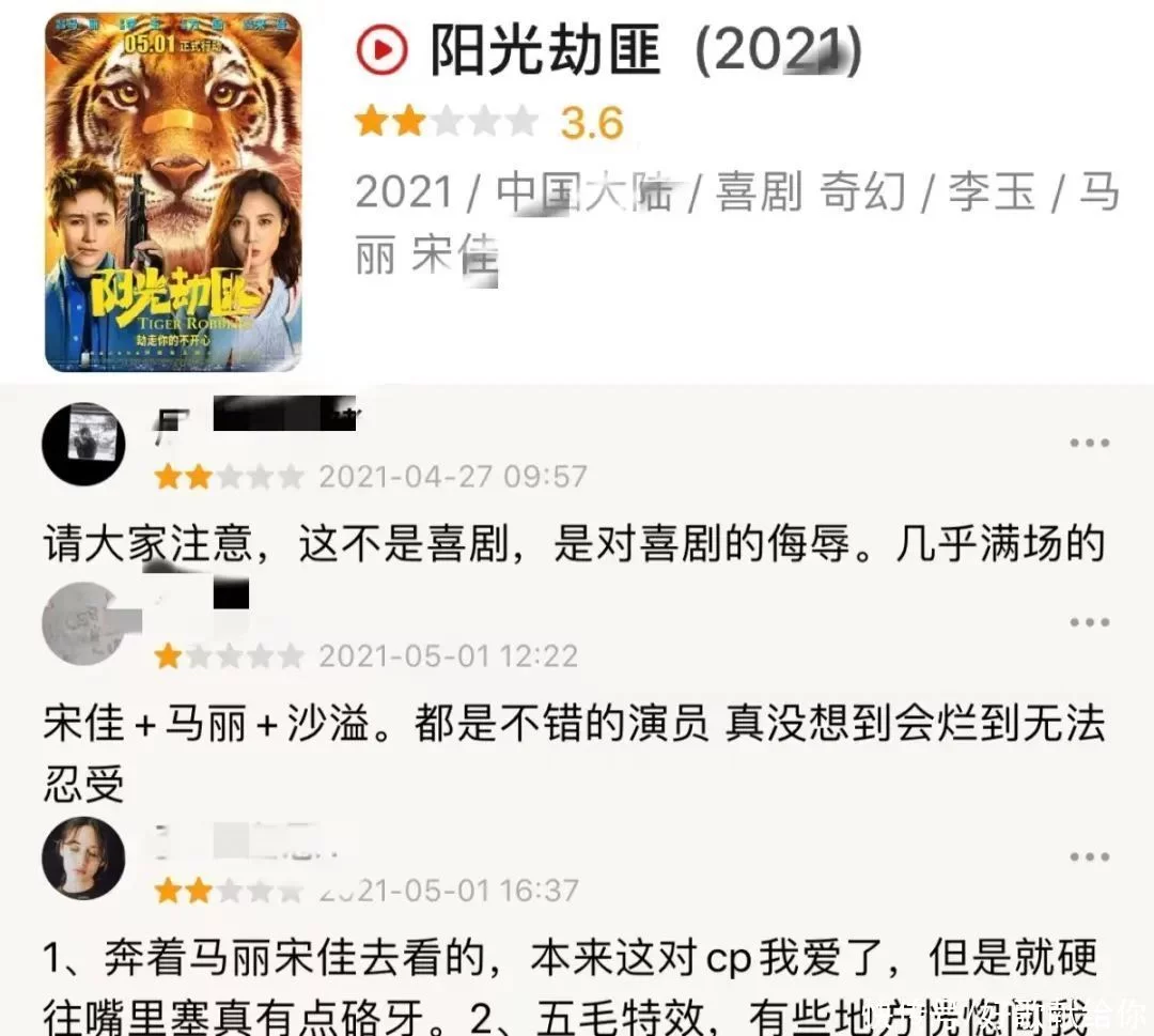 与宋佳协作的《阳光劫匪》,根本打破了马丽一切作品的最低分,没有最烂,只需更烂,情节呆子,扮演造作,故事拖拉。