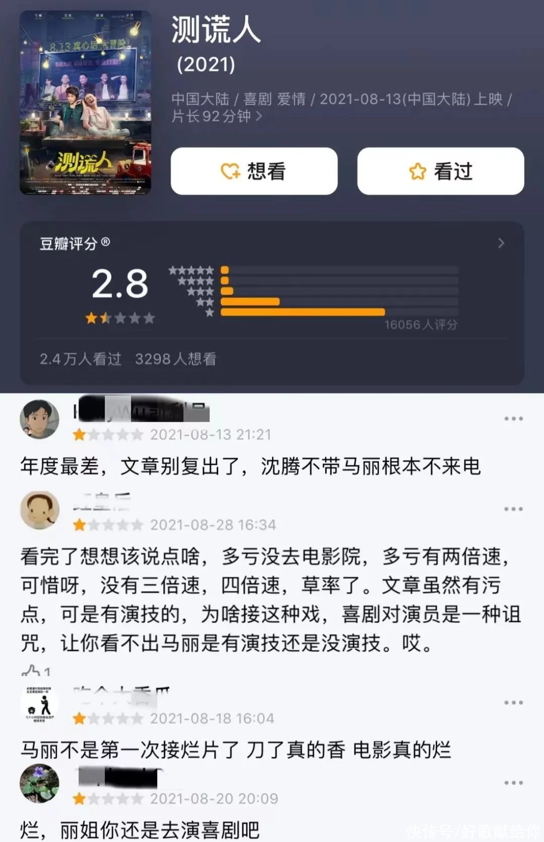 假设说文章由于昔时的工作沦落到无戏可拍的地步,才来接这类烂片,倒也能了解,可有观众缘,有资本的马丽是为什么呢?