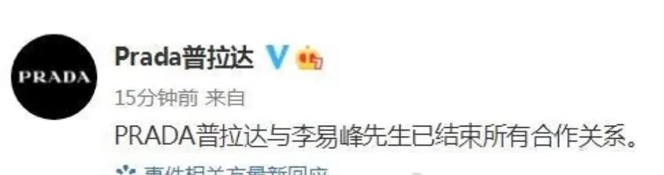和李易峰协作的品牌有很多,例如,人人熟习的六福珠宝、京都念慈菴和国际大牌普拉达等等,都由于李易峰的塌房而遭到了负面影响。