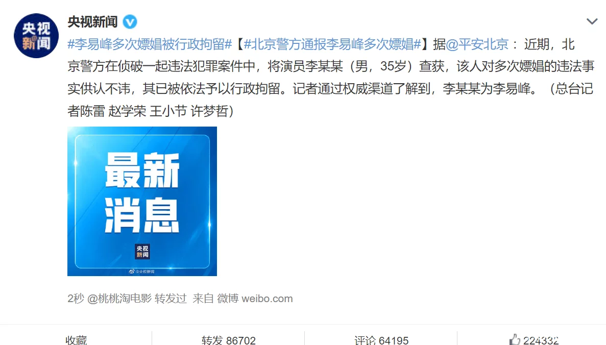 李易峰屡次嫖娼被行政拘留,多部作品受影响,或面对高额索赔