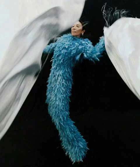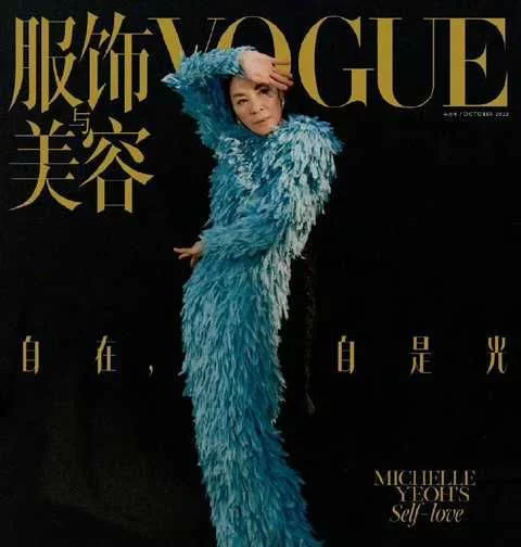 杨紫琼首登VOGUE封面,蓝羽毛外型网友直呼看不懂,全靠气质撑起