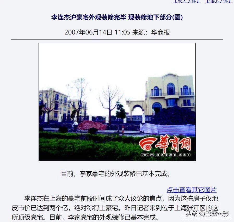 其实这对李连杰不算甚么,听说他之前投资买了豪宅左近的一大片荒地,约有四十多亩地,然则一向握在手里,也不租也不卖,就是囤着,直到后来上海房价涨起来,他才卖给李嘉诚旗下的和黄地产,大赚了一笔。