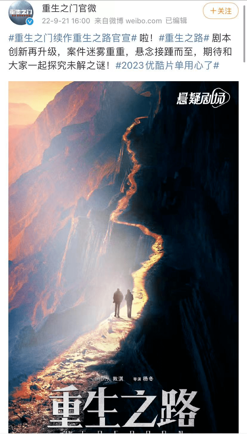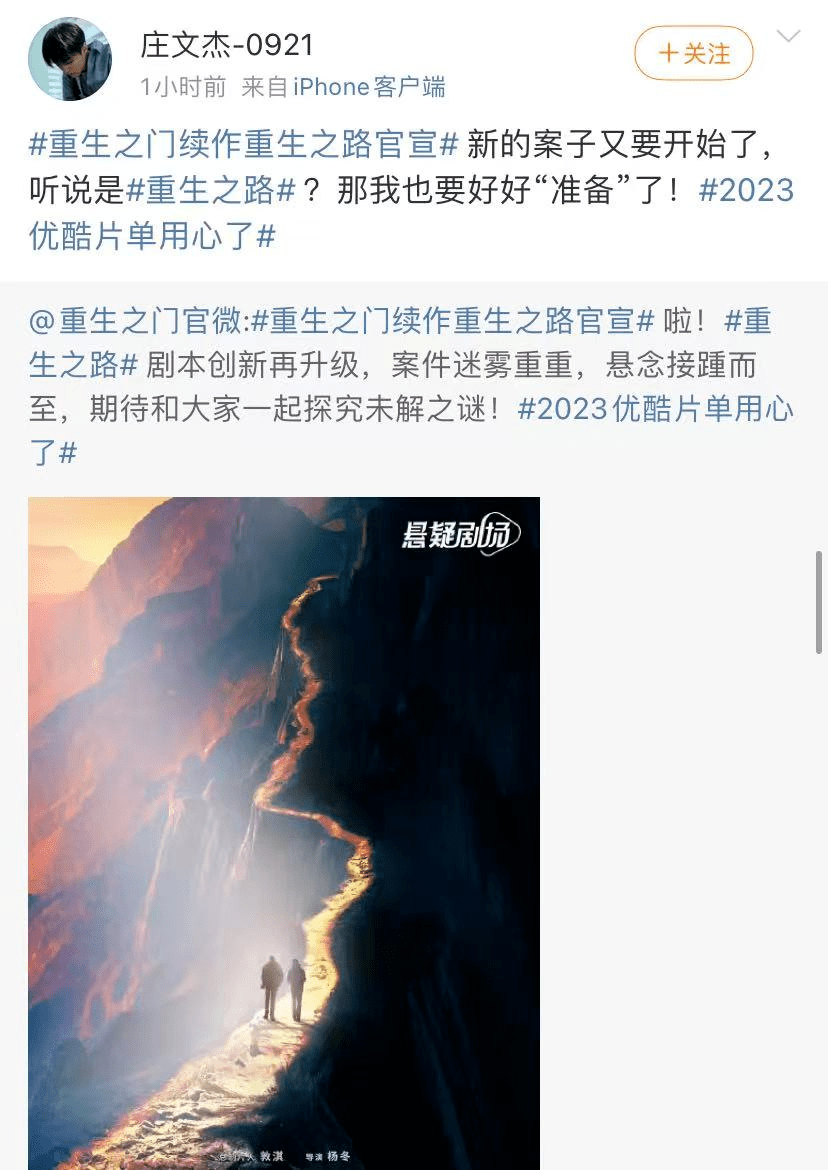 《重生之门》续作《重生之路》官宣,罗队庄文杰发文