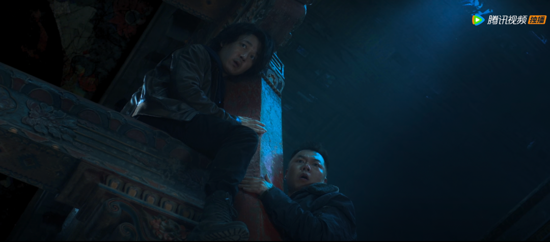 起首是从高到低,胡八一瘦子藏在柱子上看管阿东。这个柱子,在一行人刚进寺庙的时分就有镜头交卸,并且暗示了这是承重柱,不像虚柱轻易坍毁。