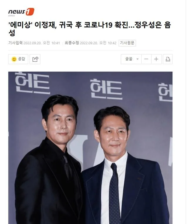 9月20日,艾美奖最佳男主角奖的演员李政宰确诊新冠。李政宰所属公司透露表现:“李政宰演员依据防疫顺序于18日回国后进行的PCR反省中确诊新冠。”