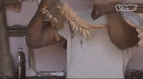 为了模拟出血效果,他们用避孕套装牛血。