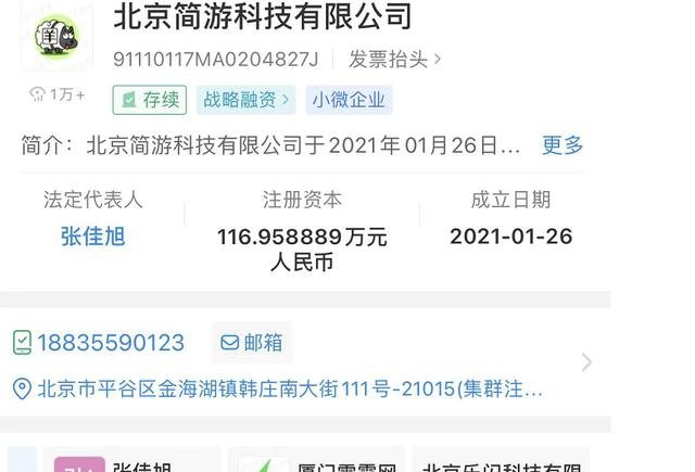 《羊了个羊》的开辟商北京简游科技有限公司,是一家成立于2021年的年老公司,由张佳旭、厦门雷霆网络科技股份有限公司、北京乐闪科技有限公司配合持股,注册资本116万,参保人数7人,是名副其实的小微企业。