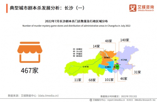 截至2022年7月,长沙共具有467家脚本杀门店,个中芙蓉区、天心区的脚本杀门店最多,辨别为140家和101家。以芙蓉区为例,芙蓉区地处湖南省的政治、经济、文明、商贸、信息中心,稀释了中国城市睁开进程,群集了彰显长沙汗青文明底蕴的相当大一局部精髓,考古发现、名人住宅、汗青街巷遍及个中。