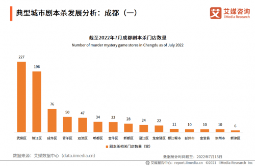 截至2022年7月,成都共具有784家脚本杀门店,个中武侯区、锦江区的脚本杀门店最多,辨别为227家及196家,首要开设在科华北路、高新手艺产业开辟园、春熙路等生齿密集的贸易中心,脚本杀线下店规划非分特别密集。以春熙路为例,周边已开设92家脚本杀线下店,散布在太古里、王府井等地,个中沉浸式推理,桌游等情势推理脚本最受欢迎,连锁店预定火爆。