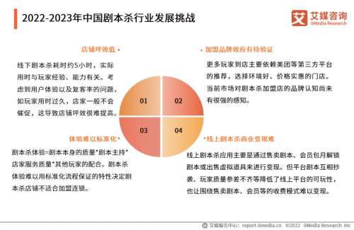 固然脚本杀市场进入一个风口期,然则脚本杀线上运用和线下门店的运营都面对着一些弗成防止的应战,比方 线下门店商号坪效低、体验难以标准化、加盟品牌效应有待验证等等。