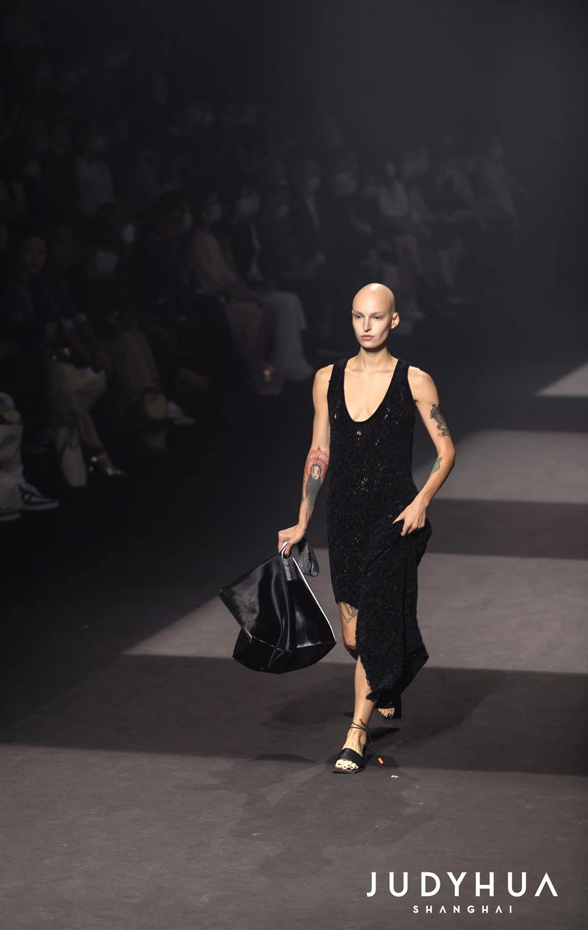 JUDYHUA2023 春夏用充溢条理,肌理感的立异再造环保资料,辅以来自世界各地的精选面料来展示春季里:上海镇静的和风,漫舞盘桓的白色胡蝶,涟漪的湖水,湖边的乌龟,玩滑板的少年... ... 廓形上大面积的弧线龟背设计照应水中生物,层叠且弧线不对称线条,展示胡蝶剪影......