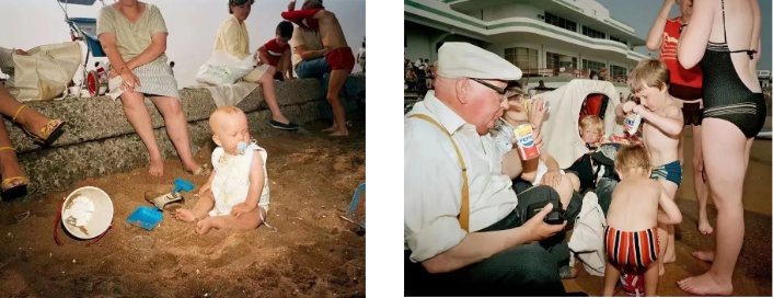 但也有一些摄影师会在日间运用闪光灯。比方英国有个摄影师叫马丁·帕尔,他有一组作品叫《最后度假胜地》,他在这组作品中选择在日间运用闪光灯进行拍摄,制造出了一种超理想的视觉言语。