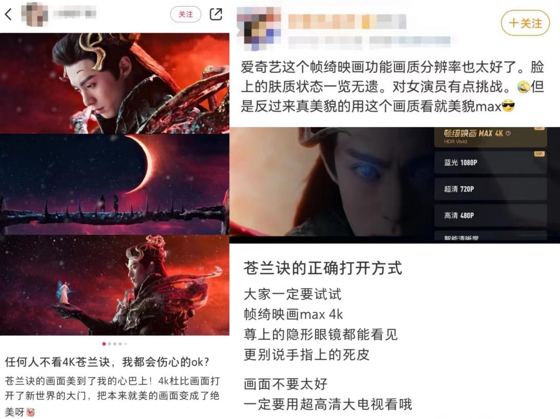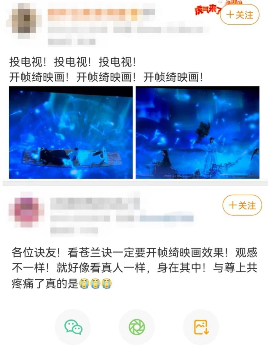 今朝二刷《苍兰诀》的很多用户已开端感触感染到了晋级后视听体验的“飞升”,也再度在社交媒体开启了疯狂安利形式